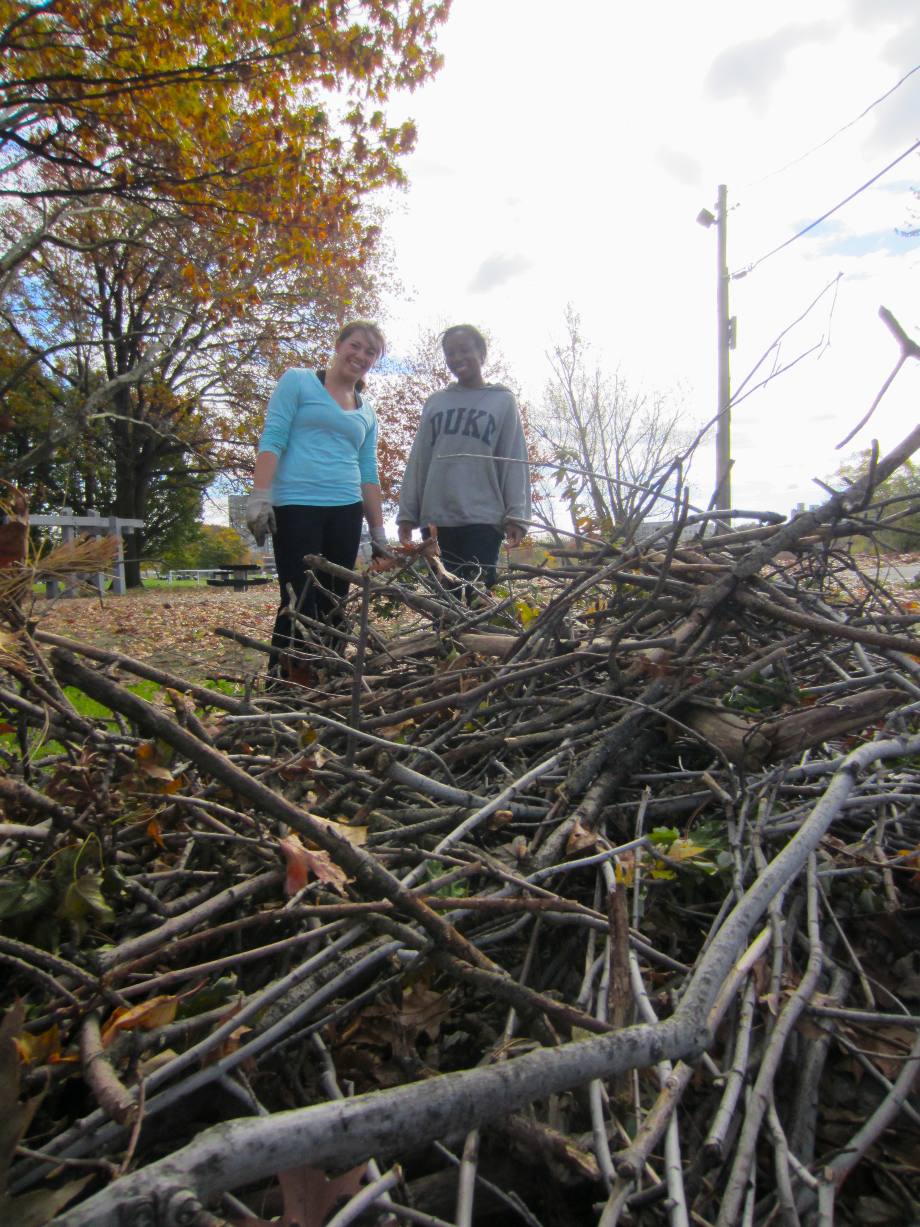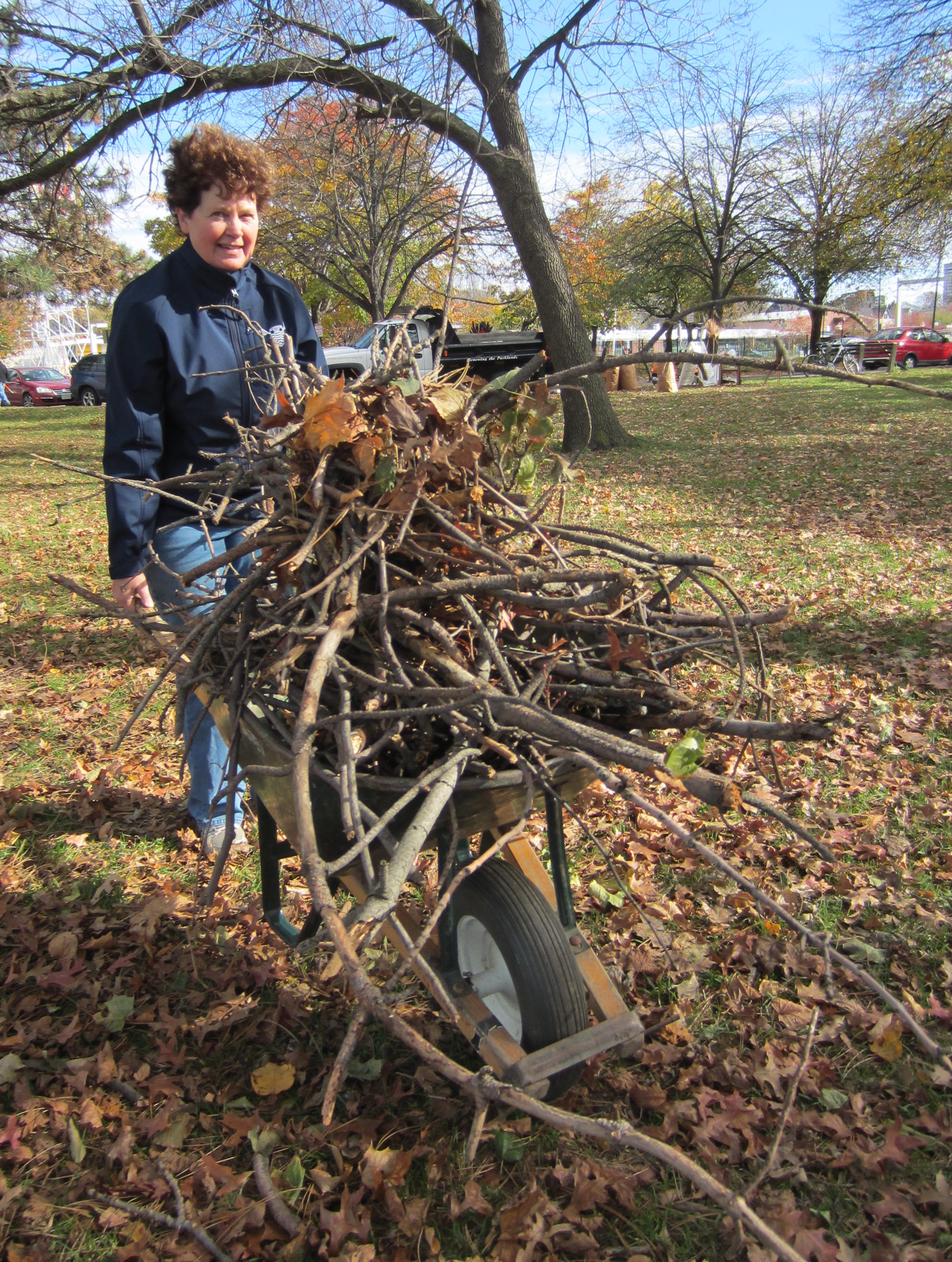 Thanks to DCR’s removal of broken tree limbs and yesterday’s cleanup, Magazine Beach looks pretty spectacular. Take a walk there and bring home kindling for winter fires, especially around the playing fields parking lot and the pedestrian footbridge–areas we didn’t get to. Please cluster other branches and twigs for DCR to pick up.