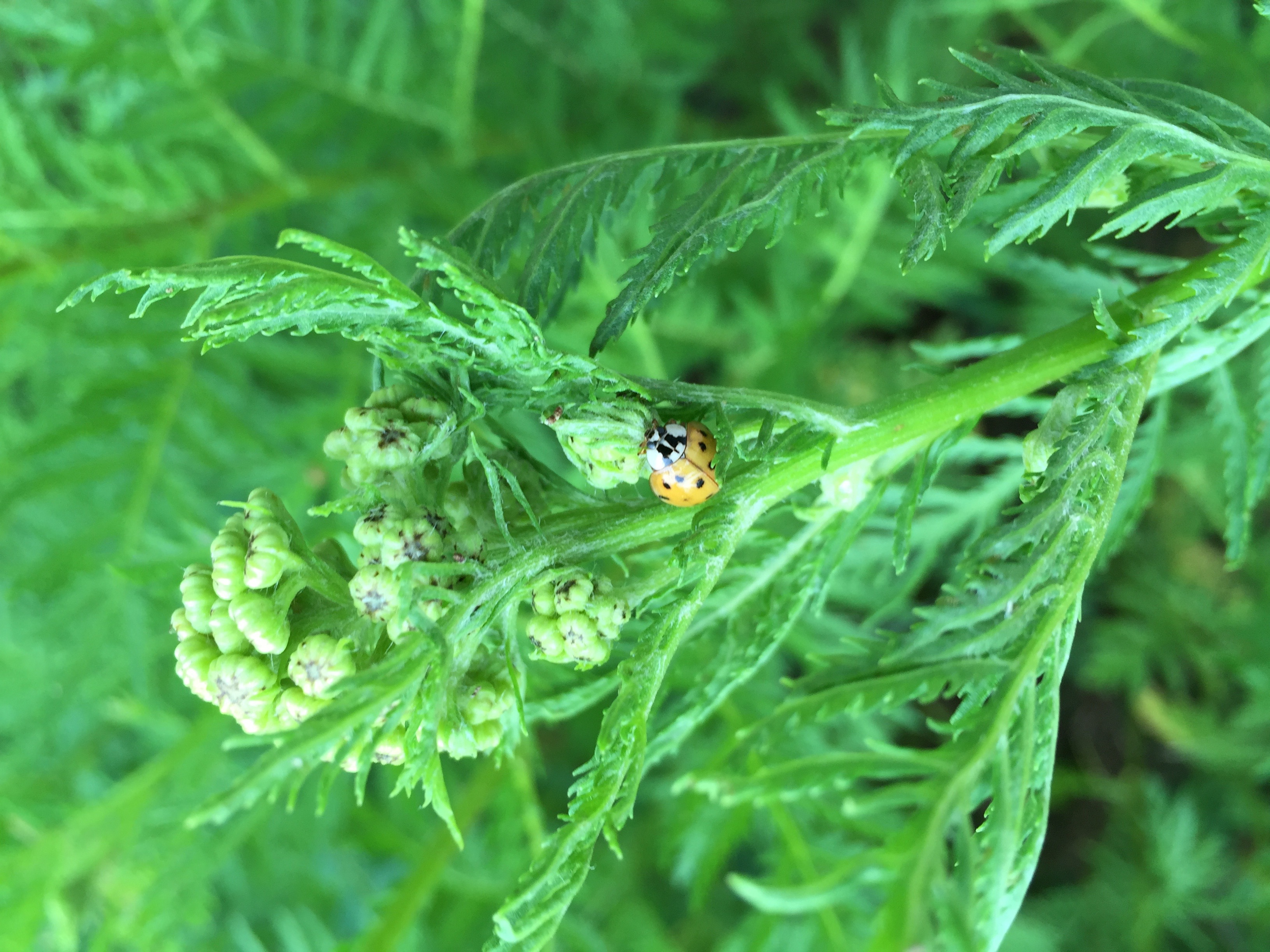 A ladybug pursuing breakfast—an aphid.